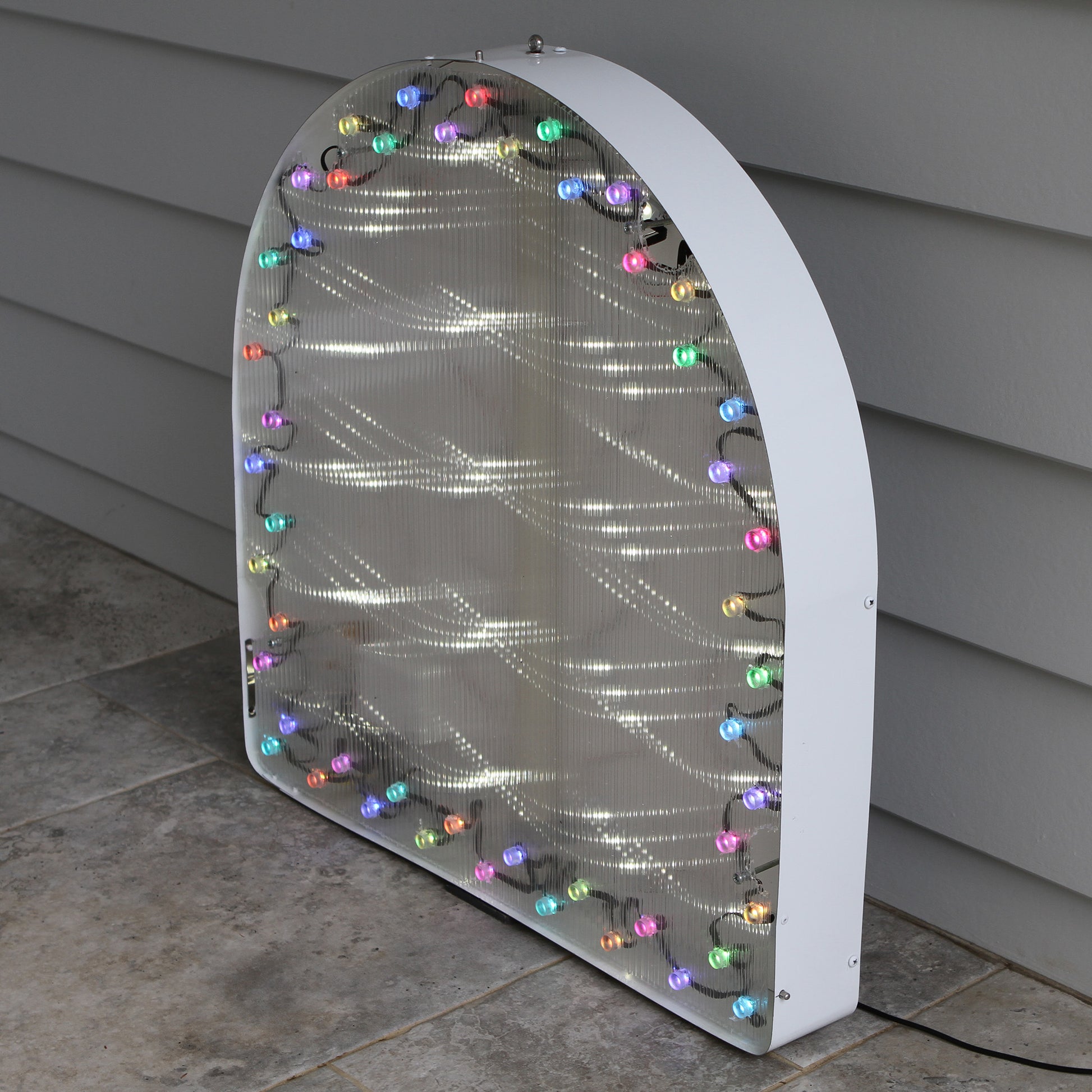 Our Festive Light Boxes can be hung from the eye on top, or held up by a stake in the ground with the interior pipe, creating a neat and tidy lawn decoration with no visible support.